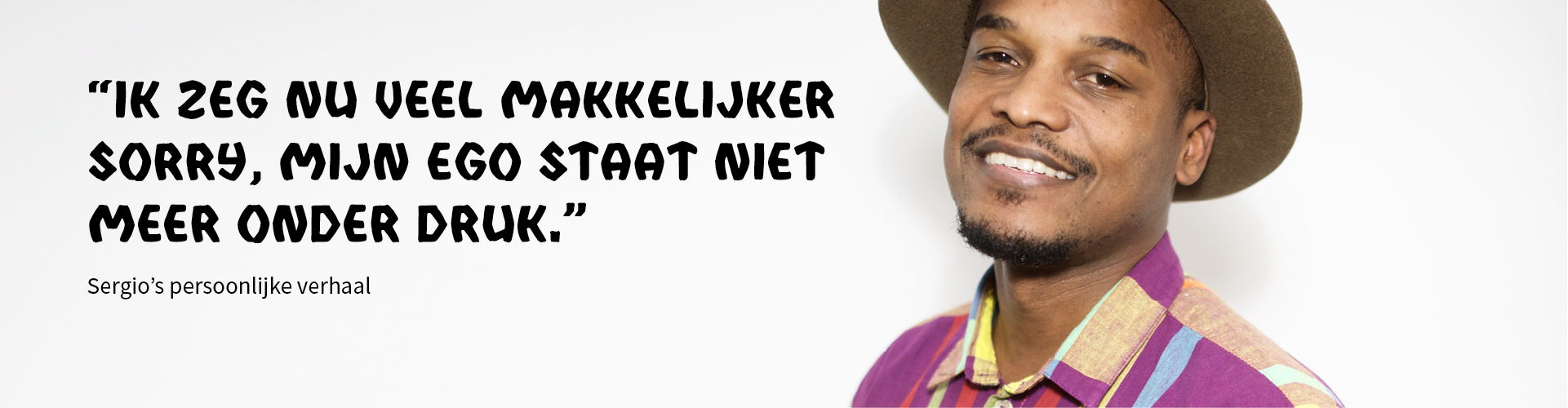 PERSOONLIJK VERHAAL - Sergio’s ego voerde vroeger de regie in zijn leven. Doordat hij zijn angsten en twijfels niet kon herkennen, gingen relaties met familie, vrienden en vriendinnen kapot. Nu brengt hij zijn ego in balans, door het te erkennen en te accepteren. Want dat is de sleutel tot het bevrijden van zijn ego. "Het positieve eraan is, is dat ik mijn ego in balans kon brengen. Mijn ego staat niet meer onder druk en ik voel me er comfortabel bij," aldus Sergio.